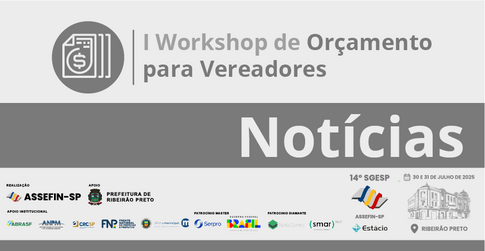 O I Workshop de Orçamento para Vereadores – Da Lei Orgânica à Execução Orçamentária acontecerá no dia 31 de julho de 2025, durante a programação do 14.º Seminário de Gestão Pública Fazendária (SGESP), em Ribeirão Preto. A atividade será realizada das 9h às 12h15, no Anfiteatro B da Universidade Estácio – Ribeirão Preto, localizado na Rua Abrahão Issa Halack, 980 – Ribeirânia. O espaço tem capacidade para 122 participantes. Com o código SGESP B31C, o workshop é voltado a vereadores(as), assessores legislativos e servidores indicados por suas Câmaras Municipais, das cidades associadas à ASSEFIN-SP. A proposta é apresentar, de forma didática e prática, o ciclo orçamentário municipal, desde sua base legal até a execução orçamentária, promovendo a qualificação do Legislativo para o acompanhamento e fiscalização das finanças públicas.