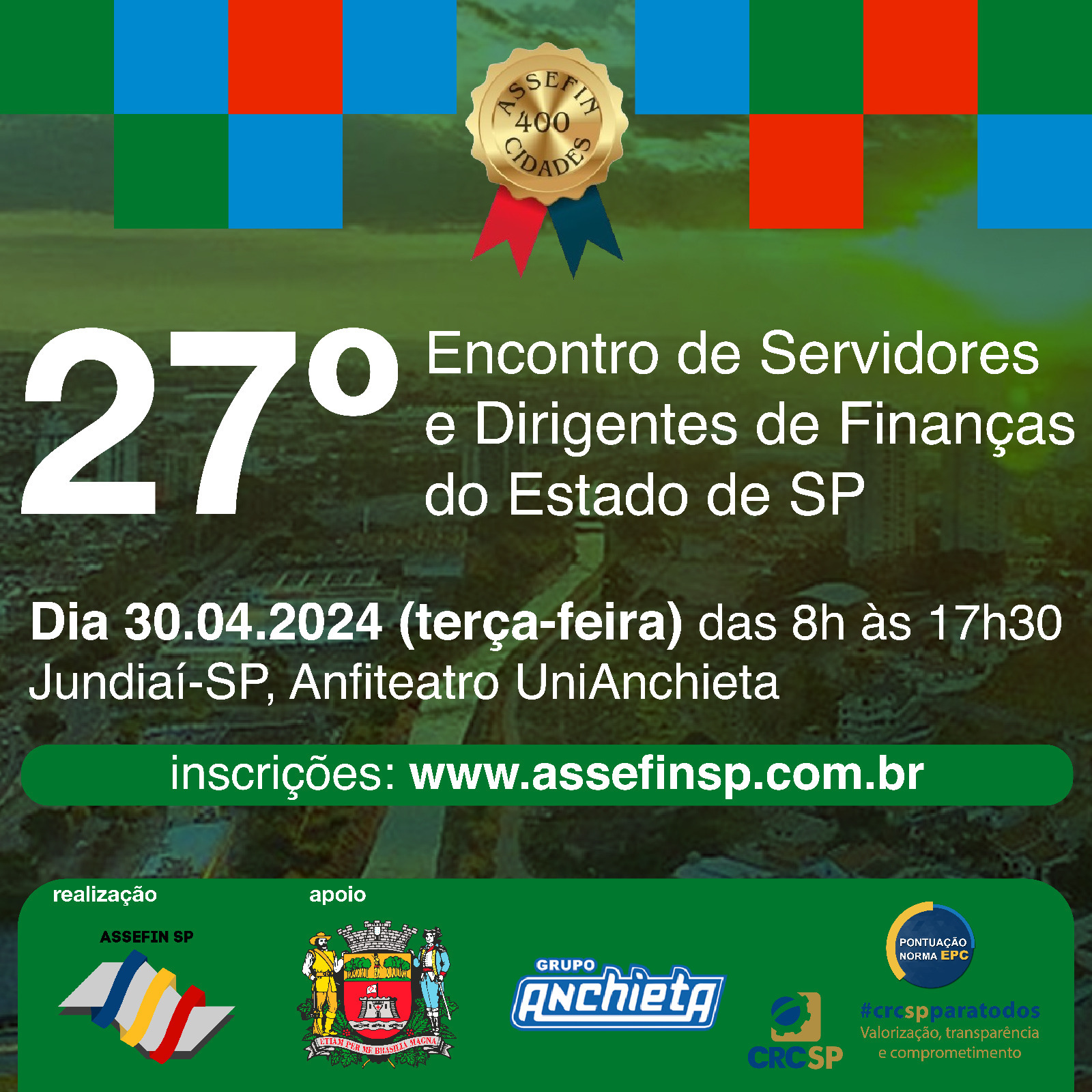 Jundiaí - 27.o Encontro ASSEFIN - Palestras fazendárias o dia todo.