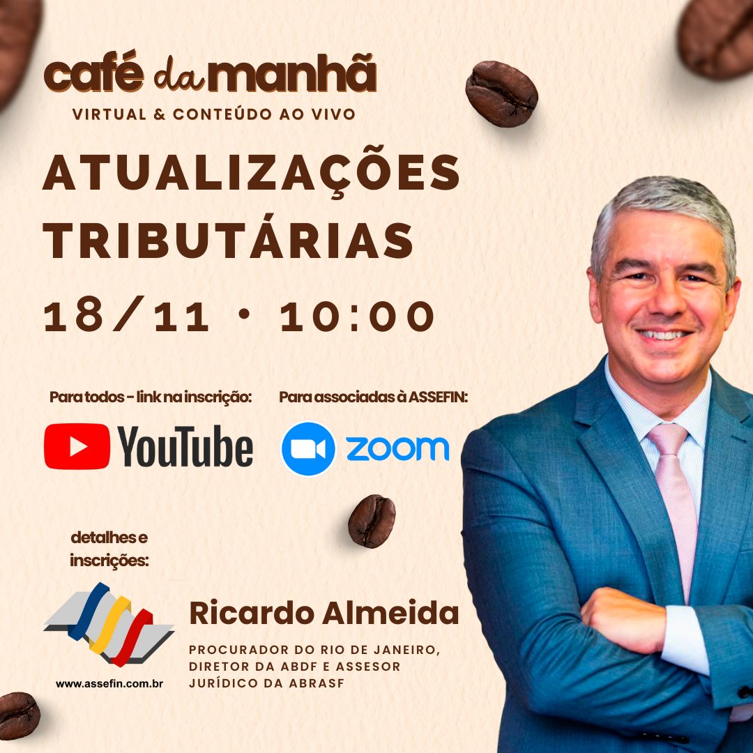 A ASSEFIN-SP realiza, no dia 18 de novembro, às 10 horas, mais uma edição do seu tradicional Café da Manhã – Virtual & Conteúdo, desta vez dedicado às novidades da jurisprudência tributária e aos seus efeitos diretos sobre os municípios.