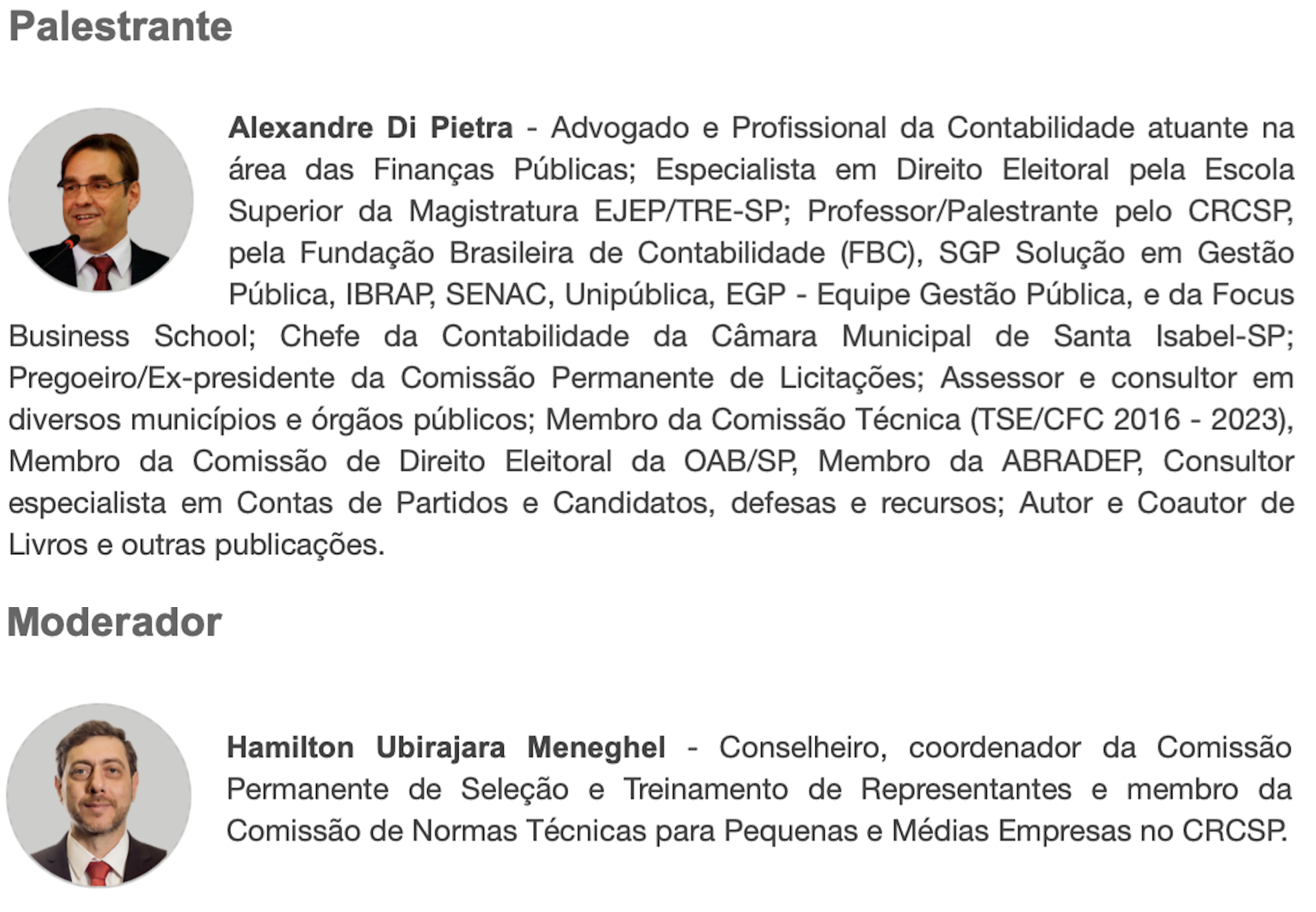 As inscrições para todas as atividades devem ser realizadas diretamente no portal do CRCSP.