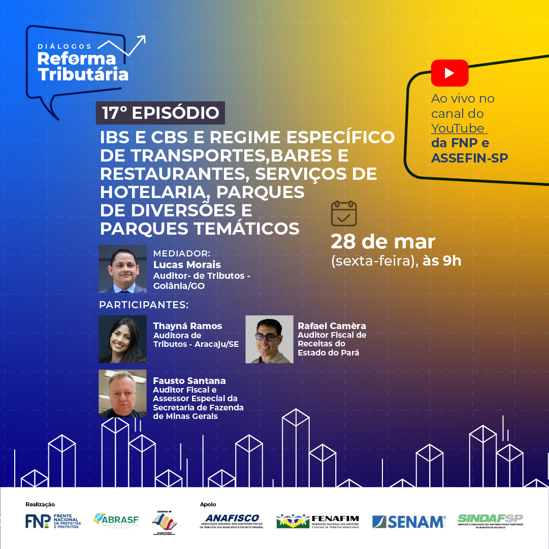 Cada episódio aborda temas estratégicos do novo sistema tributário brasileiro, como o IBS (Imposto sobre Bens e Serviços), CBS (Contribuição sobre Bens e Serviços) e regimes específicos de tributação. Os encontros promovem o intercâmbio de experiências entre especialistas e gestores, contribuindo para o aprimoramento da gestão fiscal municipal e nacional.