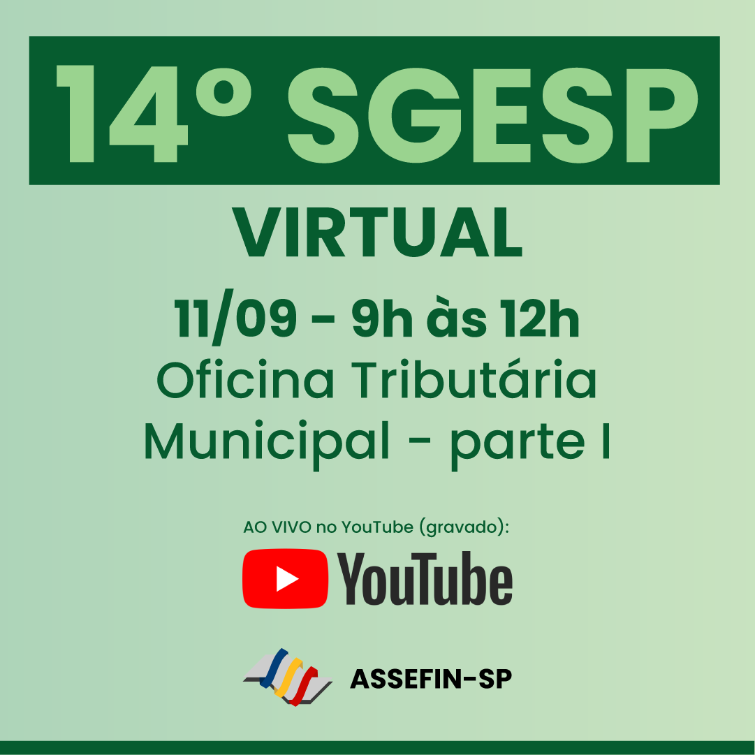 As três oficinas técnicas mais concorridas do 14.º Seminário de Gestão Pública Fazendária – SGESP, realizado nos dias 30 e 31 de julho de 2025, em Ribeirão Preto, serão exibidas no canal SGESP-OFICIAL no YouTube em estreia ao vivo nos dias 10 e 11 de setembro.