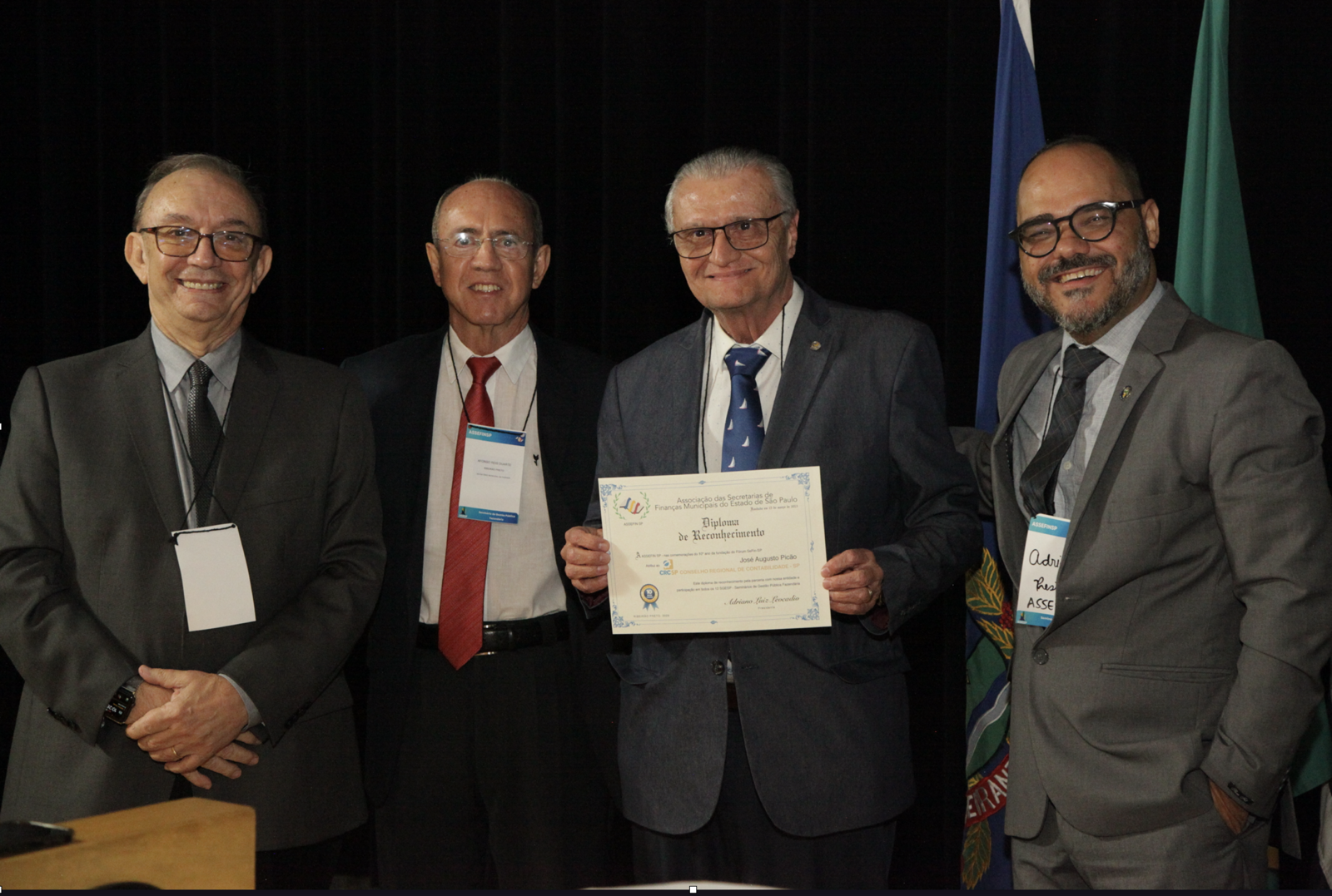 “Essas duas pessoas não faltaram a um só Seminário que realizamos, bem como estão sempre à frente de tudo que valoriza a contabilidade pública em Ribeirão Preto e região, não podíamos deixar de fazer esse registro”, falou o secretário-executivo ao entregar o diploma ao conselheiro do CRCSP, José Augusto Picão (foto).