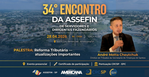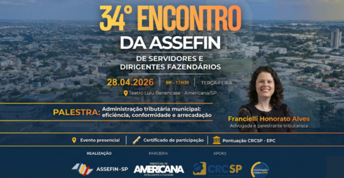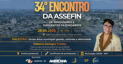 A presidente do Tribunal de Contas do Estado de São Paulo (TCESP), Conselheira Dra. Cristiana de Castro Moraes, está confirmada no 34.º Encontro de Servidores e Titulares Fazendários da ASSEFIN-SP, que será realizado no dia 28 de abril de 2026, em Americana (SP).