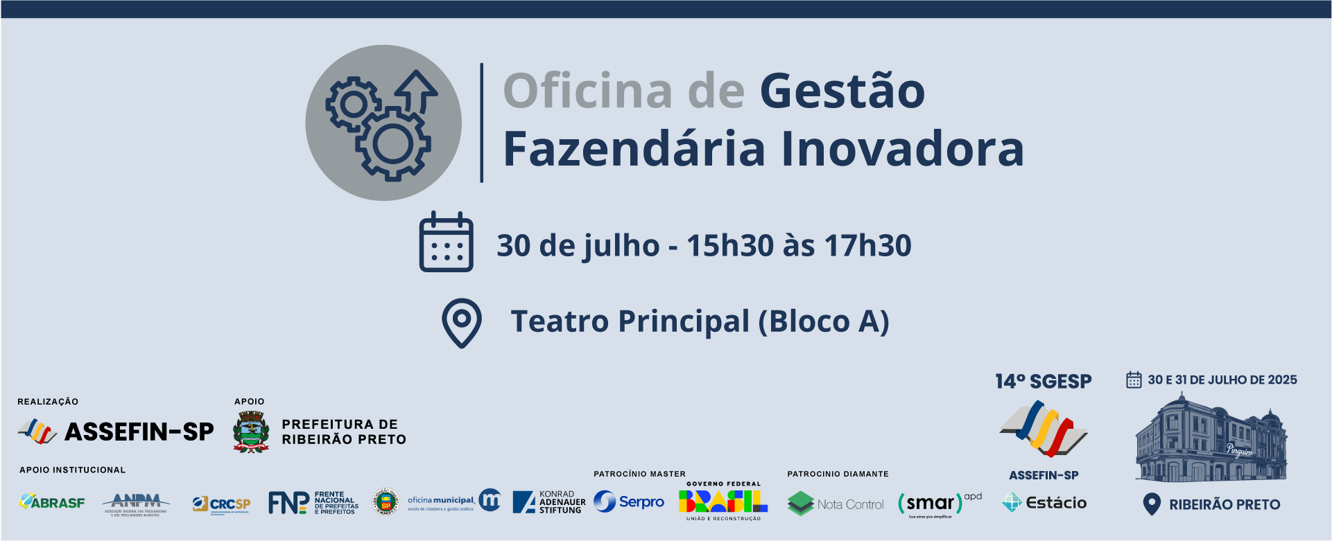 A 14.ª edição do Seminário de Gestão Pública Fazendária (SGESP), promovido pela ASSEFIN-SP, acontecerá nos dias 30 e 31 de julho de 2025, com uma programação intensa voltada à qualificação dos gestores públicos. O evento será realizado no Teatro Principal e nos anfiteatros de Ribeirão Preto, reunindo especialistas e autoridades em finanças públicas para debater temas centrais como inovação, reforma tributária, contabilidade, auditoria e orçamento municipal.