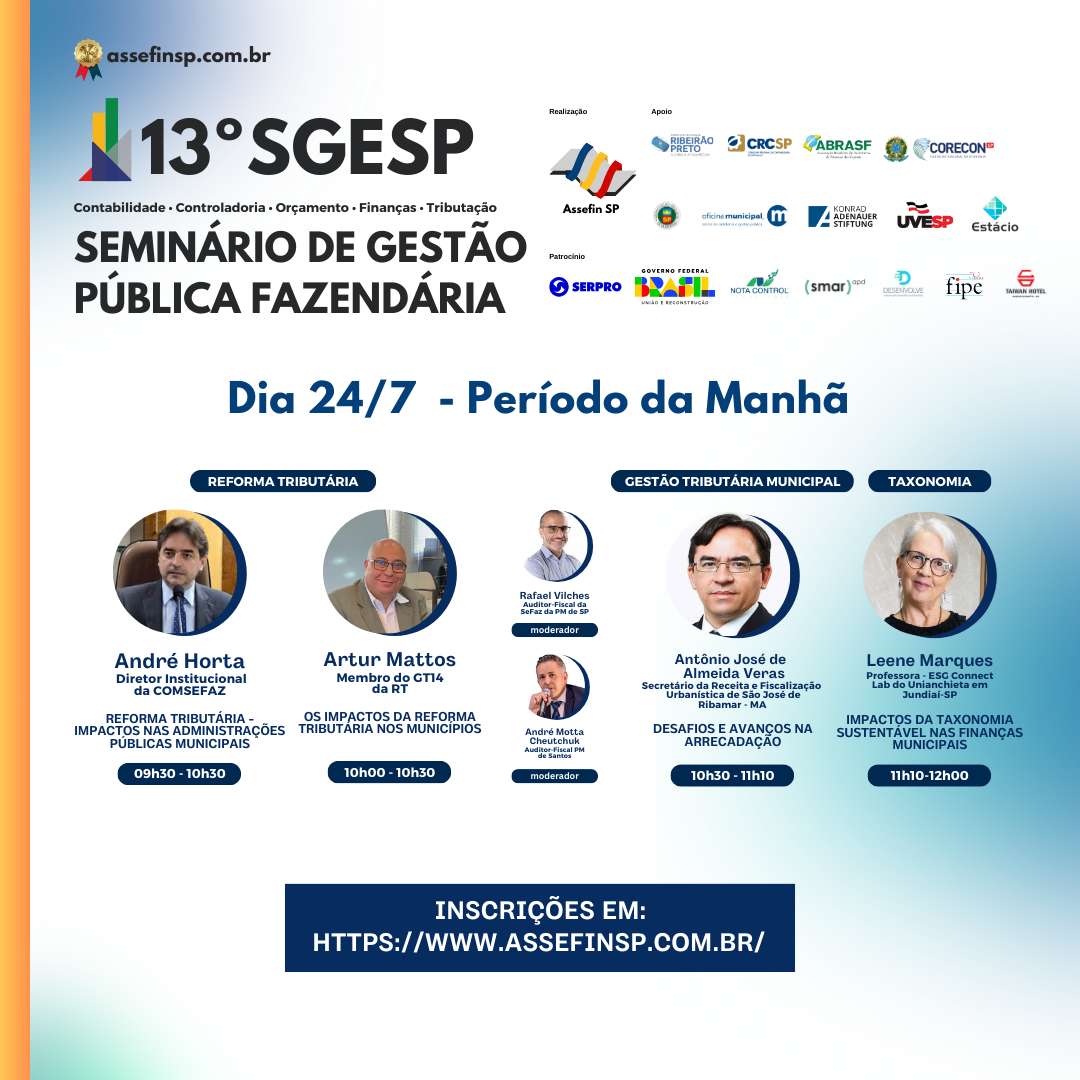 Programação: https://www.assefinsp.com.br/pt-br/noticias/secretarios-municipais-de-financas-de-varios-estados-participarao-do-sgesp