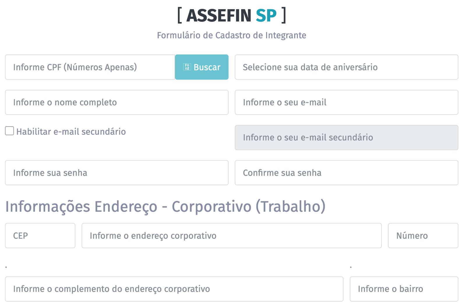 Caso haja alguma falha ou inconsistência nesta etapa, o usuário pode entrar em contato com o suporte pelo e-mail faleconosco@assefinsp.com.br.