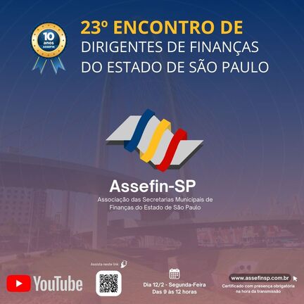 23º Encontro de Dirigentes de Finanças do Estado de São Paulo evento realizado em São José dos Campos / SP, em 23/05/2023 exibição do evento em 12.02.2024, à partir das 9 horas