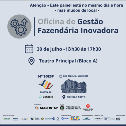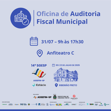 Inscrições encerradas, está com a lotação esgotada!Oficina reunirá especialistas para discutir fiscalização, arrecadação, tecnologia, IBS, ISS, ITBI, IPTU e os impactos da transição tributária (Reforma).