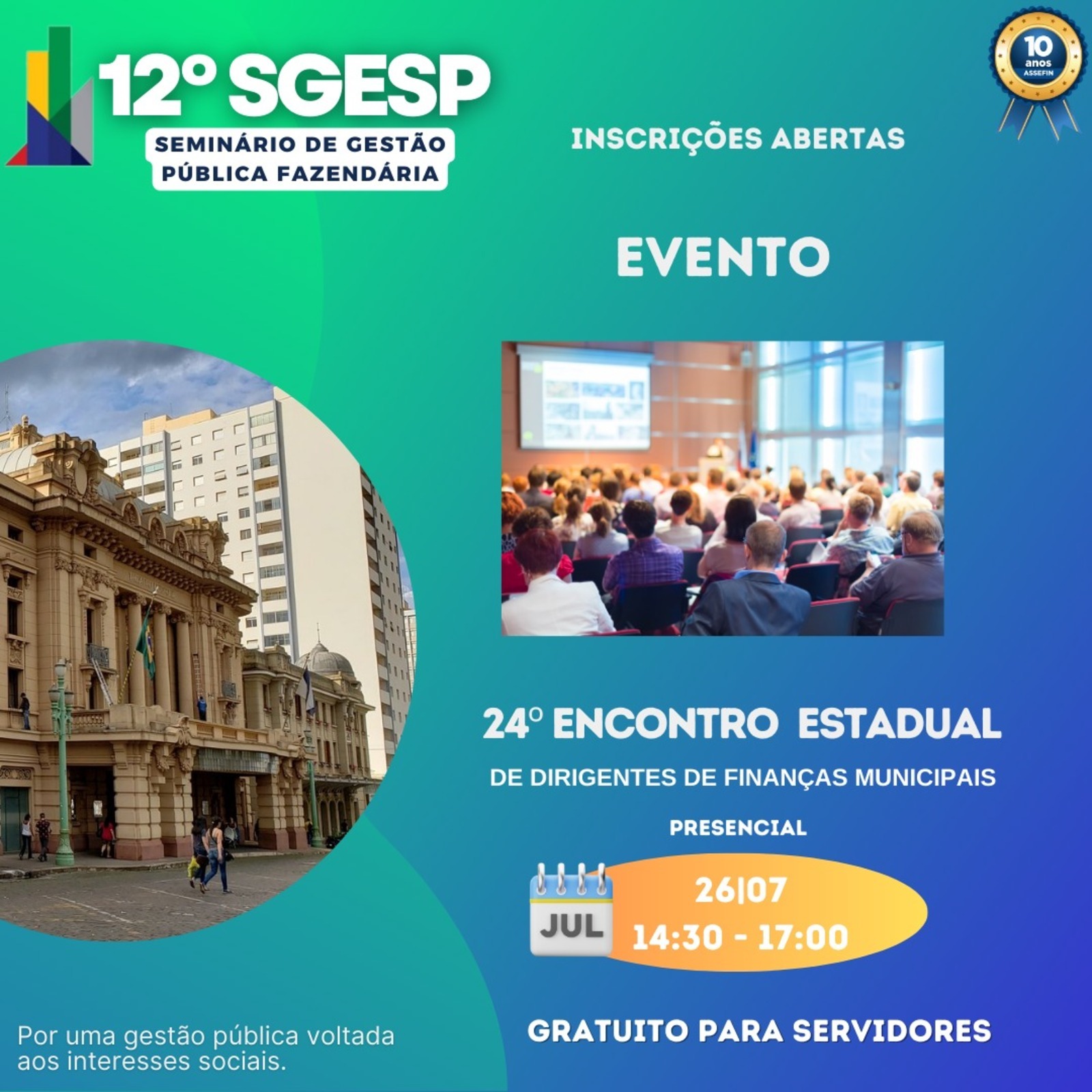 Faça já a sua inscrição, como é presencial as vagas são limitadas -> www.assefinsp.com.br .