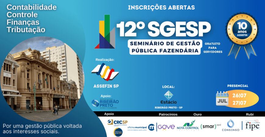 No último sábado, dia 24, foi lançado oficialmente o 12º Seminário de Gestão Pública Fazendária (SGESP).
