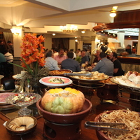 O sistema é por adesão, tem a função de jantar para todos, uma vez que é em sistema de coquetel.