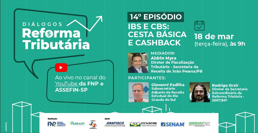 O 14º episódio da série Diálogos Reforma Tributária, promovido pela Frente Nacional de Prefeitos (FNP), ABRASF e ASSEFIN-SP, terá como foco central a discussão sobre o IBS (Imposto sobre Bens e Serviços) e o CBS (Contribuição sobre Bens e Serviços), além de abordar temas relevantes como a Cesta Básica Nacional e o mecanismo de cashback para famílias de baixa renda. O evento ocorrerá no dia 18/03/2025, das 9h às 10h, com transmissão ao vivo pela TVFNP e ASSEFIN-SP.