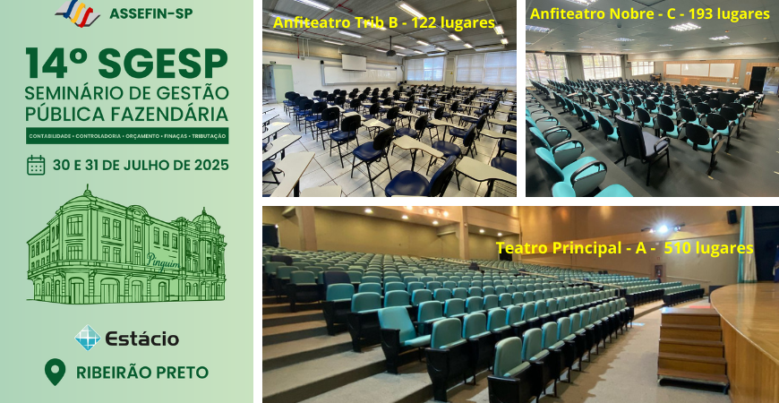 Nos dias 30 e 31 de julho de 2025, a cidade de Ribeirão Preto sediará o 14.º Seminário de Gestão Pública Fazendária – SGESP, realizado pela ASSEFIN-SP. Com o apoio da Universidade Estácio e da Prefeitura Municipal, o evento ocupará três auditórios do campus, oferecendo uma programação diversificada, simultânea e gratuita aos municípios associados.
