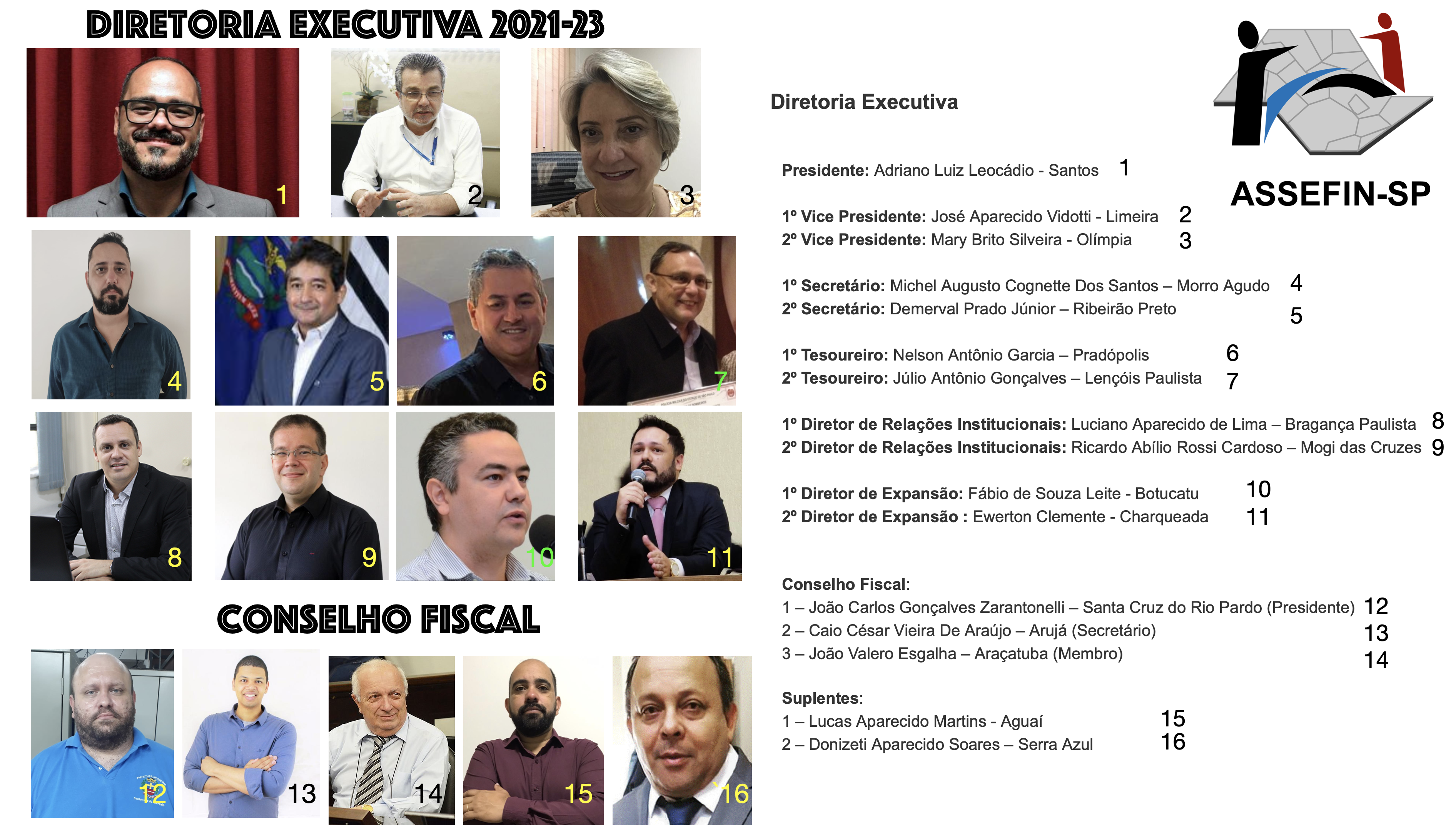 · representantes de Ribeirão Preto, Morro Agudo, Pradópolis, Lençóis Paulista, Bragança Paulista, Mogi das Cruzes e Botucatu em cargos de secretaria, tesouraria, relações institucionais e expansão.