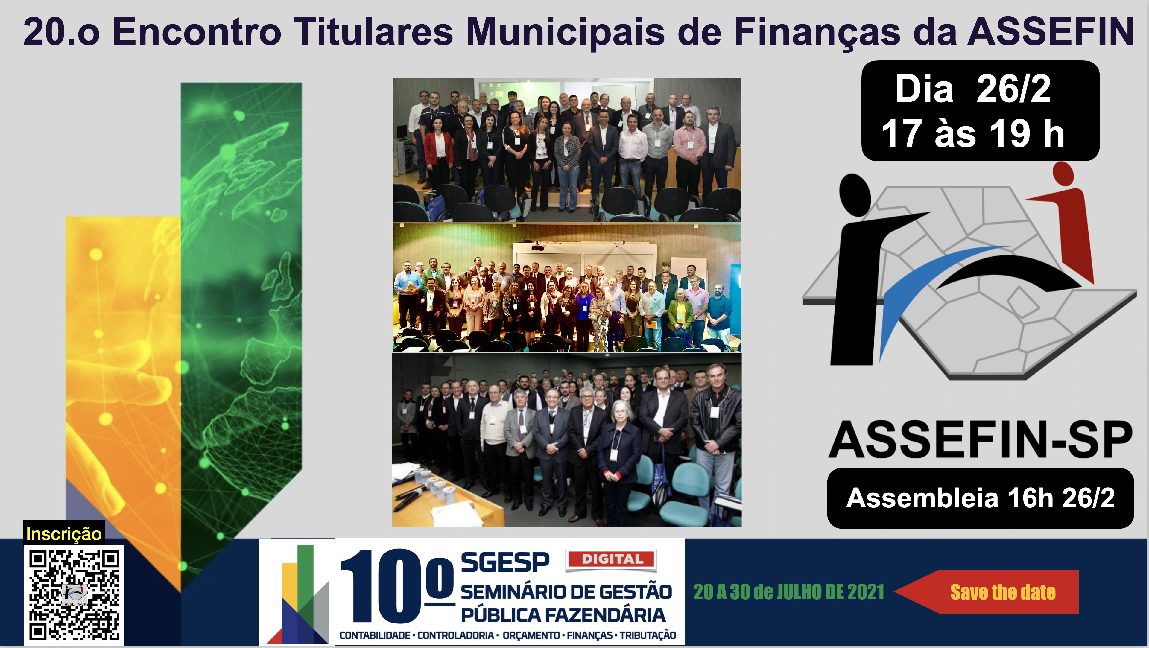 A Associação das Secretarias Municipais de Finanças do Estado de São Paulo (ASSEFIN-SP) realizou, em 5 de março de 2021, seu 20.º Encontro em formato virtual, pela plataforma Zoom. A assembleia reuniu representantes de cerca de 50 municípios e marcou a primeira eleição de diretoria desde a fundação oficial da entidade, em 2019.
