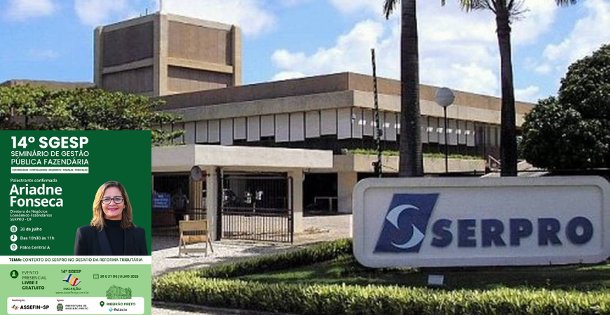 A Diretora de Negócios Econômico-Fazendários do Serpro, Ariadne Fonseca, está confirmada como representante da empresa na abertura oficial do 14.º Seminário de Gestão Pública Fazendária – SGESP, no dia 30/7, 9 horas, o seminário vai até às 17h30 do dia 31 de julho de 2025, (dois dias) na Universidade Estácio de Ribeirão Preto. Ariadne participará do evento representa o Serpro, e seu presidente, Alexandre Gonçalves de Amorim, que teve impedimento de agenda.