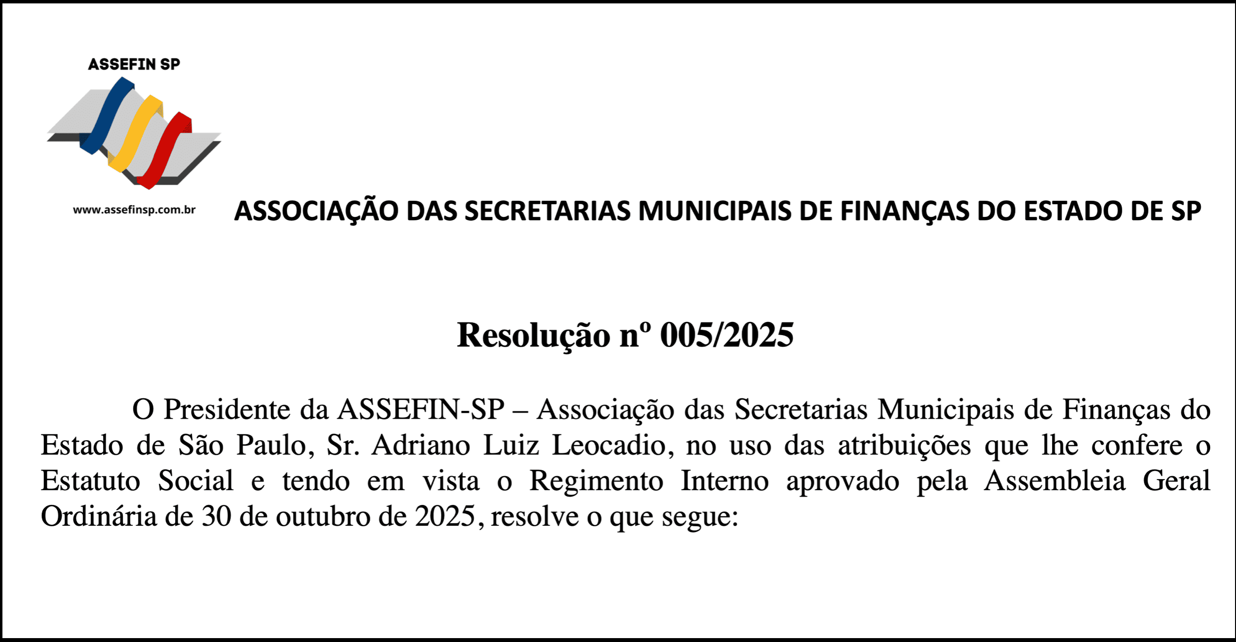 O novo texto, assinado pelo presidente Adriano Luiz Leocadio, consolida o modelo no âmbito do Regimento Interno aprovado na Assembleia Geral de 30 de outubro, em Praia Grande, que tornou permanente a possibilidade de incentivos à filiação e de isenção para cidades de pequeno porte.