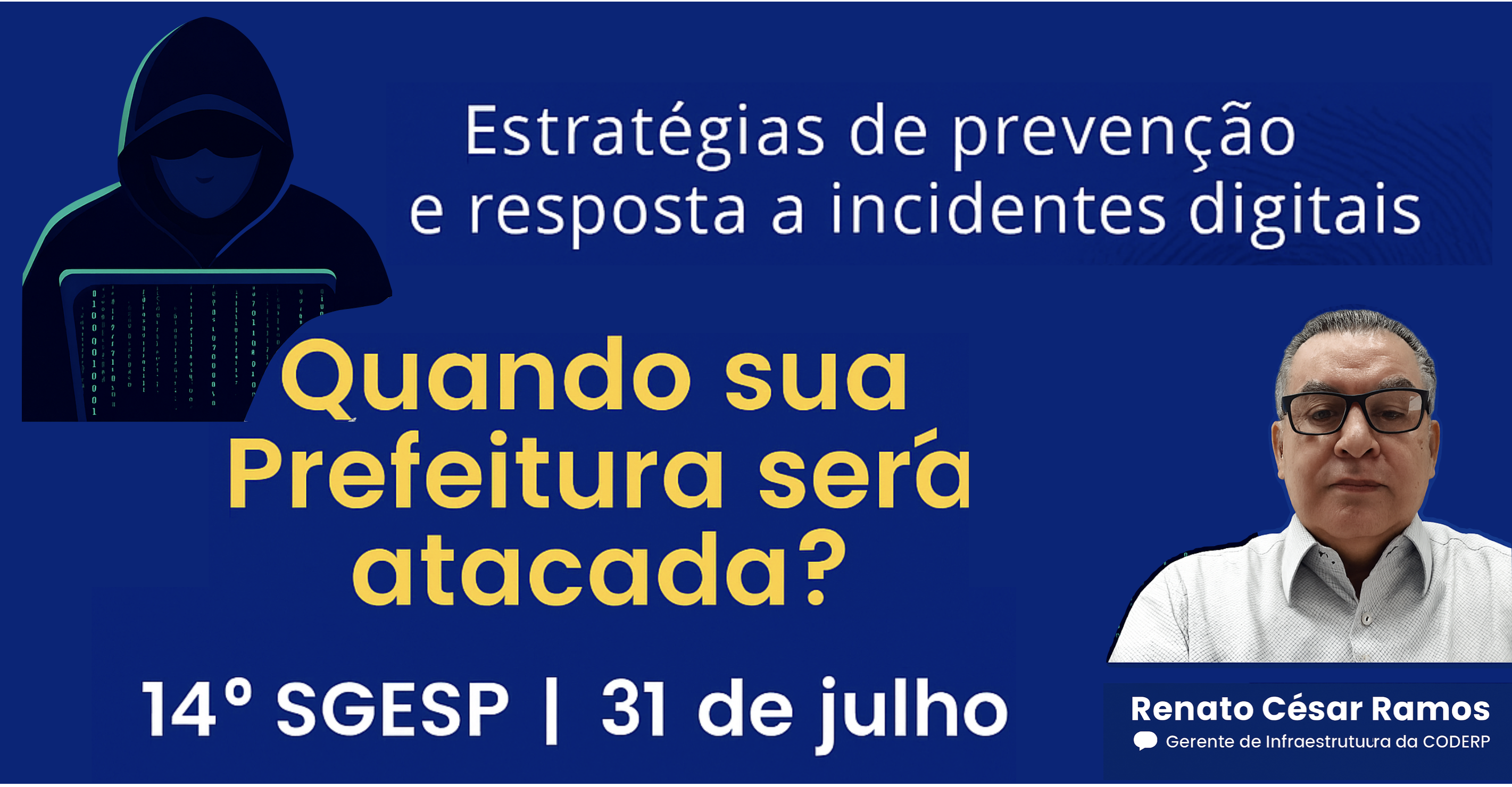 “Quando sua Prefeitura será atacada? Estratégias de prevenção e resposta a incidentes digitais”, a ser ministrada por Renato César Ramos, gerente de infraestrutura da CODERP – Companhia de Desenvolvimento Econômico de Ribeirão Preto.