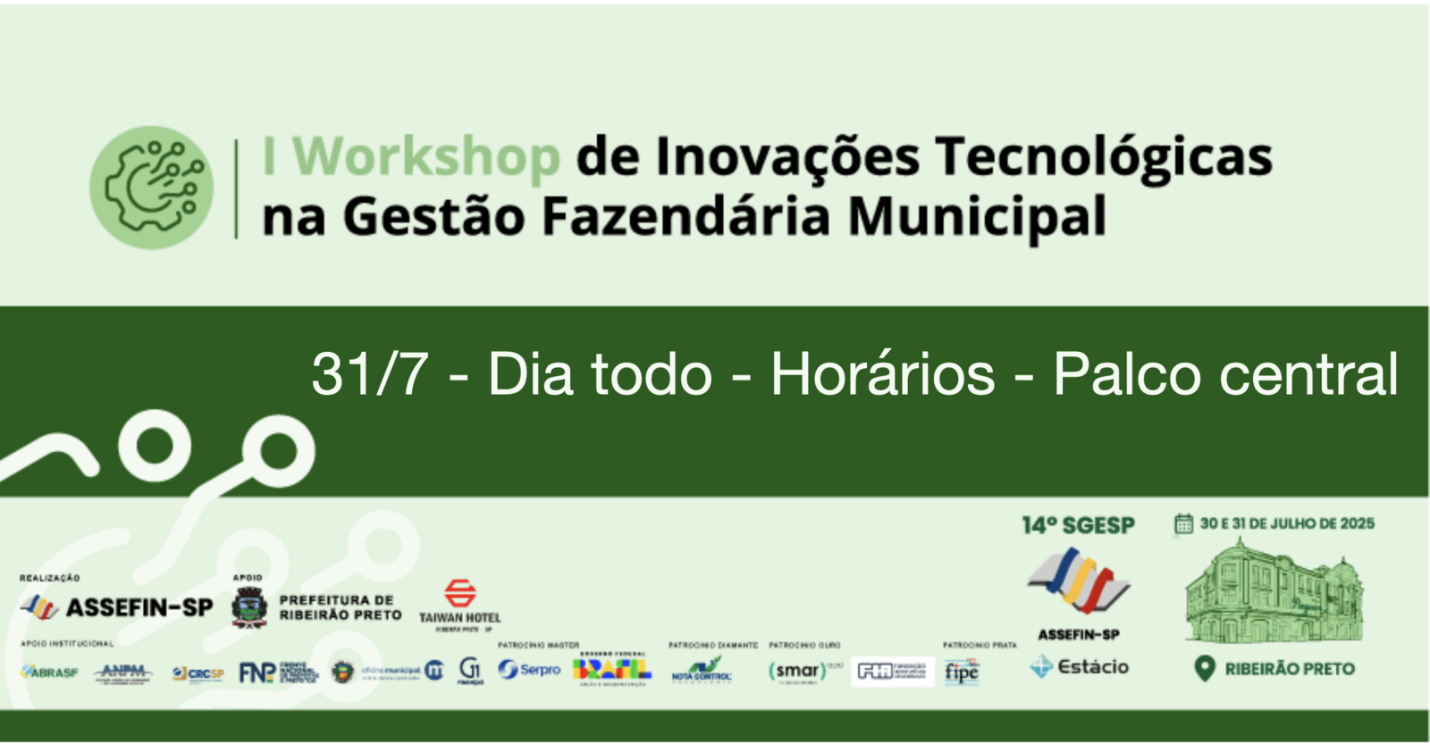 A palestra faz parte do conjunto de atividades do 14.º SGESP voltadas à inovação tecnológica e transformação digitalnos municípios, com foco na modernização das finanças públicas, da fiscalização tributária e dos controles internos.
