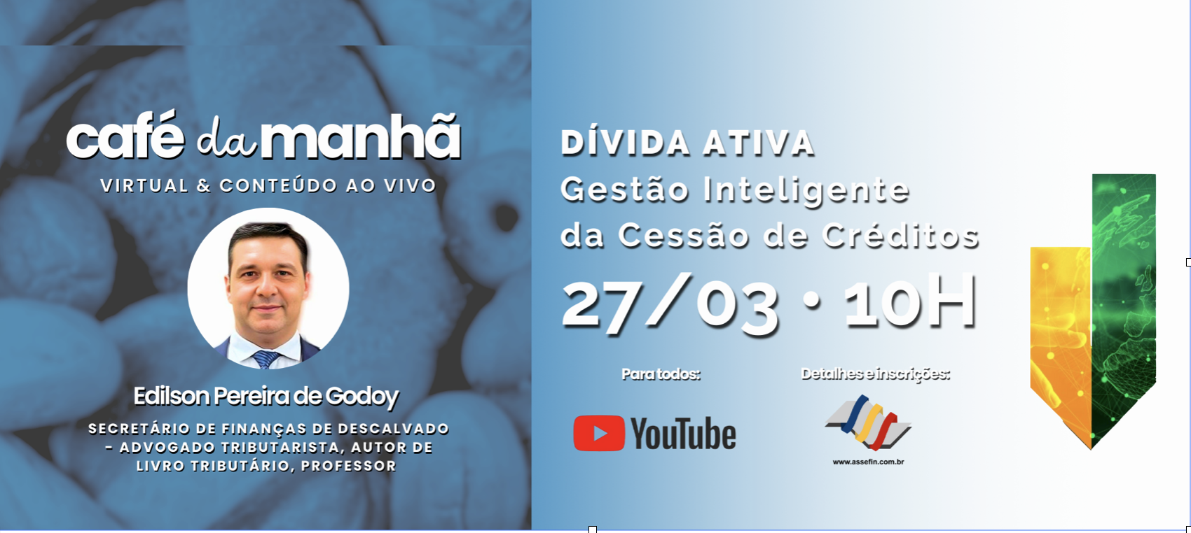 No dia 27/3, às 10h, a ASSEFIN-SP realiza mais uma edição do Café da Manhã Virtual & Conteúdo, trazendo um debate essencial sobre a gestão da Dívida Ativa antes da cessão de créditos.