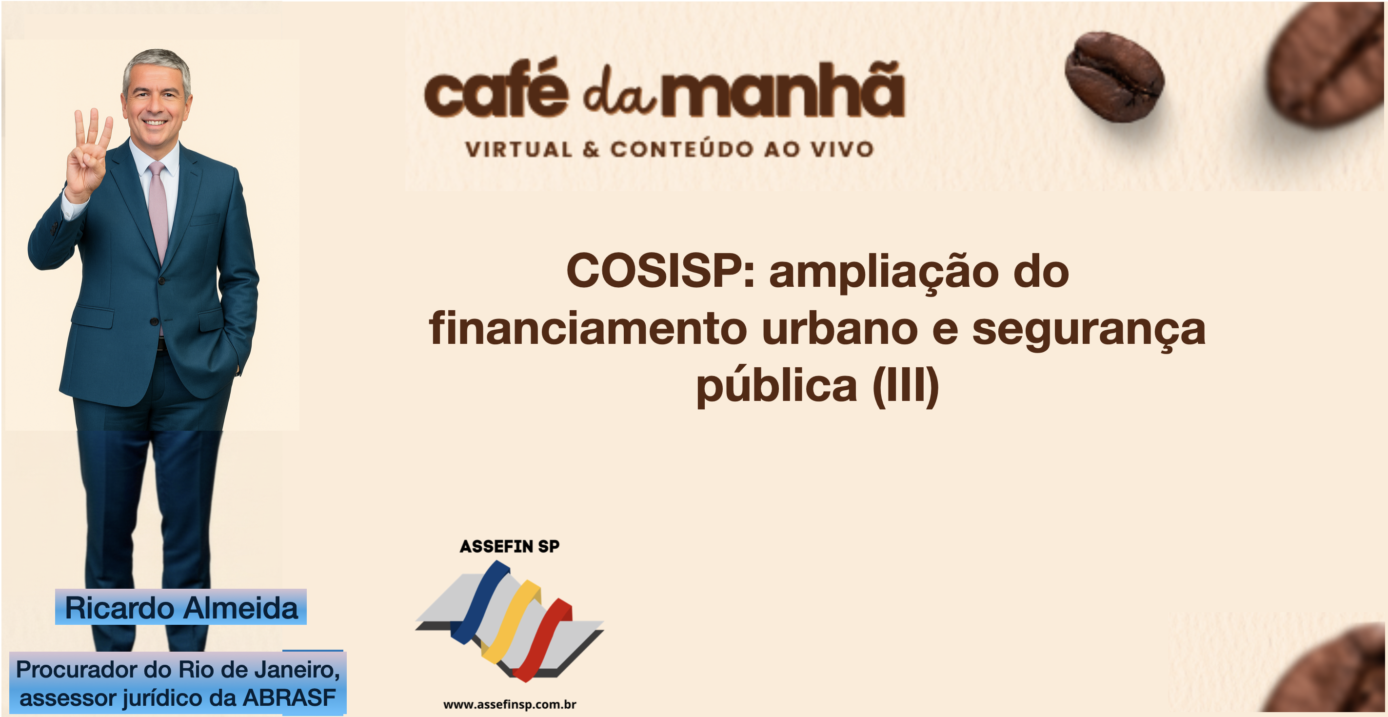 No Café da Manhã – Virtual & Conteúdo (18/11), o procurador municipal Dr. Ricardo Almeida apresentou a terceira tese de sua análise: a transformação da CIP (Contribuição para Iluminação Pública) na COSISP — Contribuição para Sistemas de Iluminação, Segurança e Preservação Urbana.