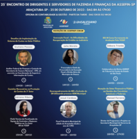 A organização do 25.o Encontro de Servidores e Dirigentes Municipais de Finanças do Estado de SP, que será realizado o dia todo de 25/10 (quarta-feira) em Araçatuba, divulgou três boas notícias hoje.