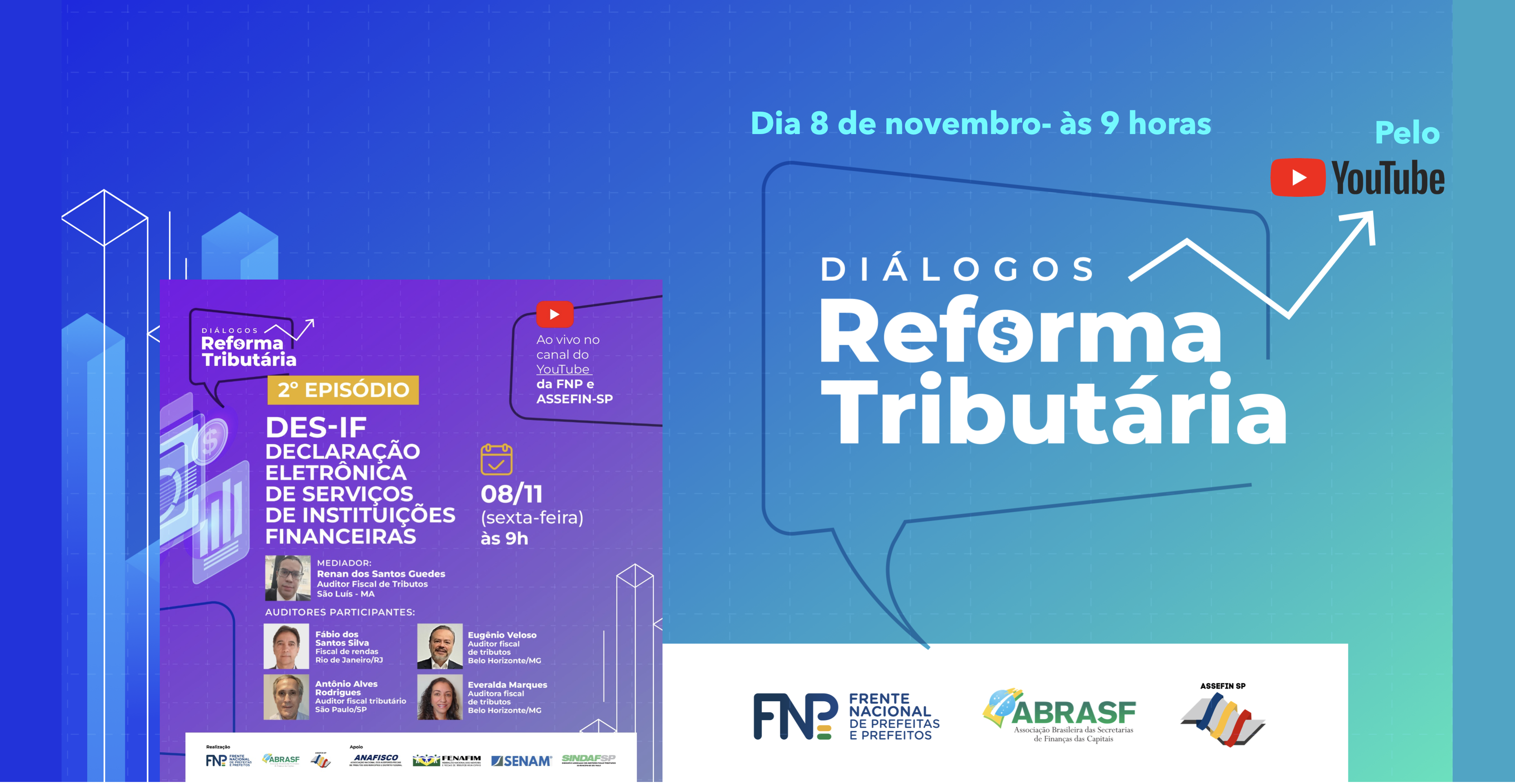 O episódio desta semana trará um painel aprofundado sobre a Declaração Eletrônica de Serviços de Instituições Financeiras (DES-IF), uma obrigação acessória crucial para instituições financeiras e empresas que seguem o Plano Contábil das Instituições do Sistema Financeiro Nacional (COSIF). A moderação ficará a cargo de Renan dos Santos Guedes, auditor fiscal de tributos de São Luís (MA), com a participação dos especialistas Fábio dos Santos Silva, fiscal de rendas do Rio de Janeiro (RJ); Eugênio Veloso, auditor-fiscal de tributos de Belo Horizonte (MG); Antônio Alves Rodrigues, auditor-fiscal tributário de São Paulo (SP); e Everalda Marques, auditora-fiscal de tributos de Belo Horizonte (MG).