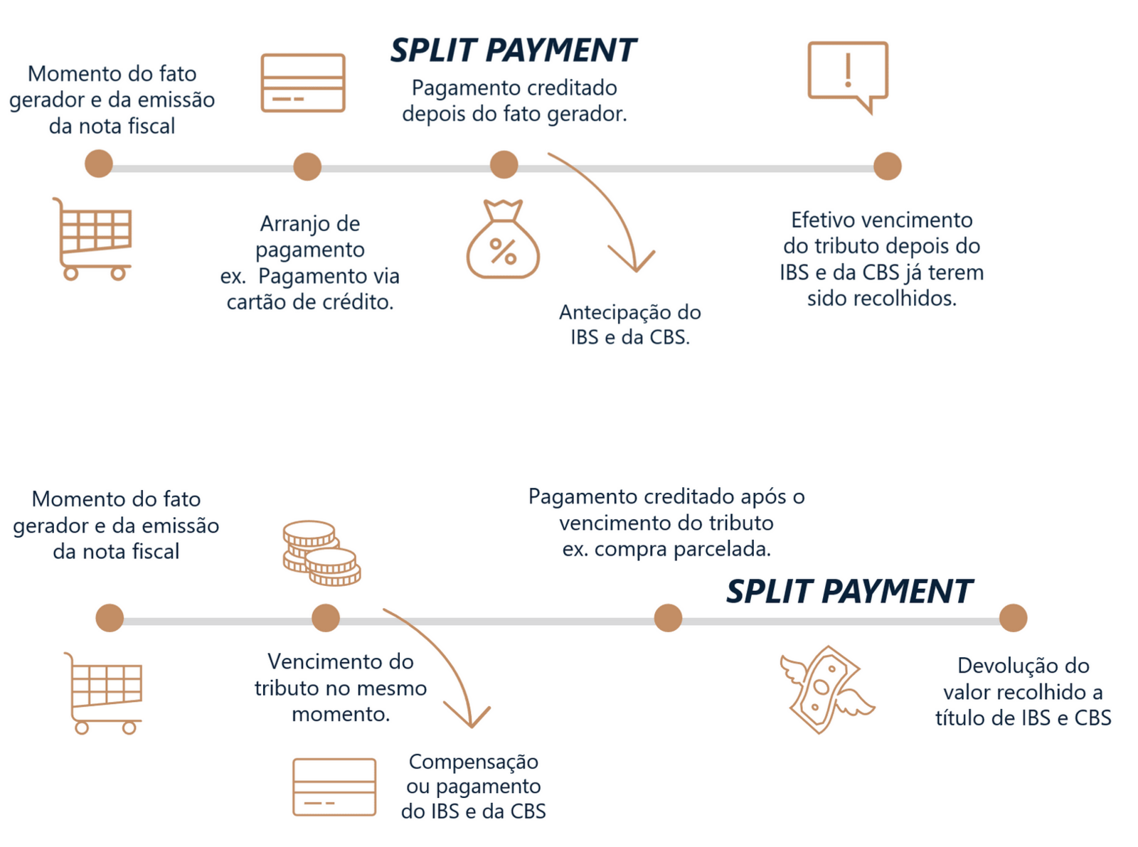 O split payment, ou pagamento repartido, é um mecanismo inovador de recolhimento de tributos. Ele direciona automaticamente uma parte do valor da transação ao governo no momento do pagamento eletrônico, eliminando a necessidade de transferências posteriores pelo contribuinte. Esse modelo aumenta a eficiência administrativa, reduz fraudes fiscais e elimina custos de obrigações acessórias. Ele é especialmente relevante para o IBS e CBS, impostos unificados que integram a reforma tributária brasileira.
