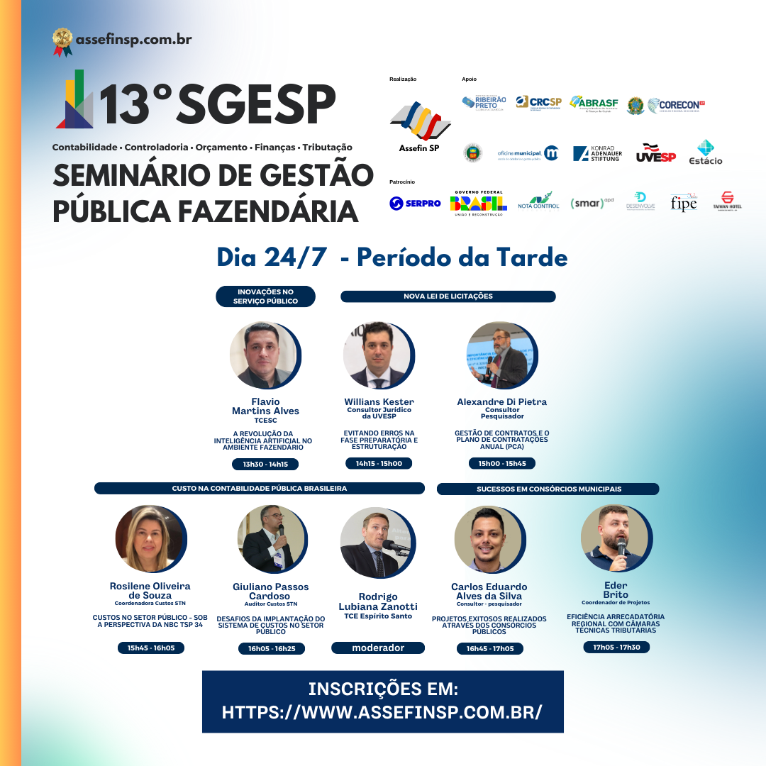 Programação: https://www.assefinsp.com.br/pt-br/noticias/secretarios-municipais-de-financas-de-varios-estados-participarao-do-sgesp