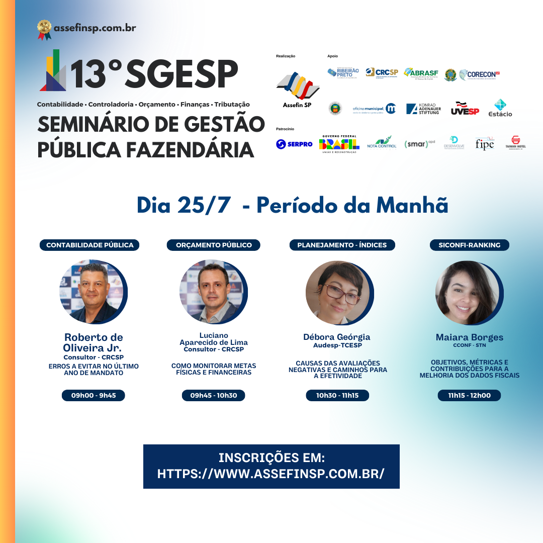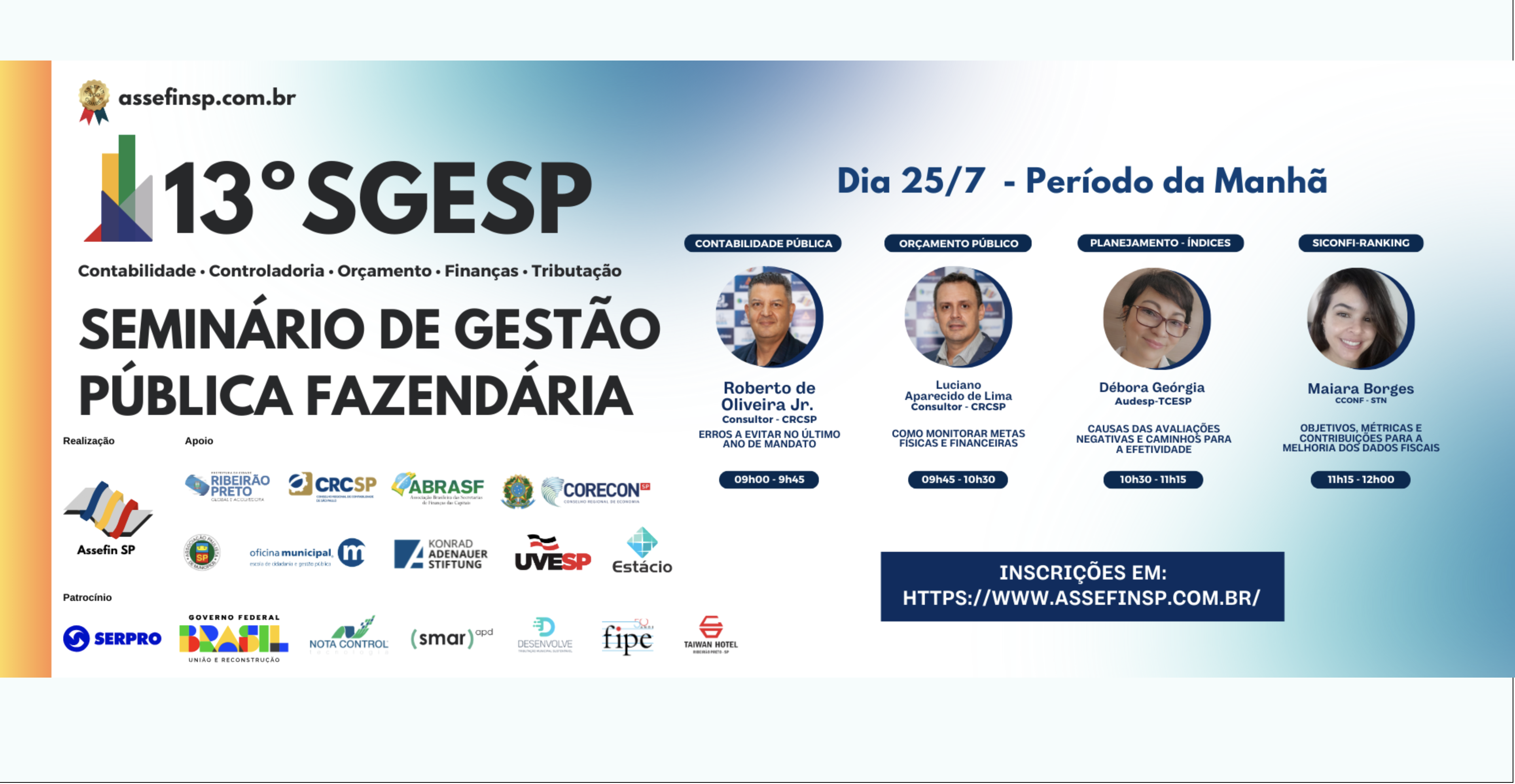 Programação: https://www.assefinsp.com.br/pt-br/noticias/secretarios-municipais-de-financas-de-varios-estados-participarao-do-sgesp