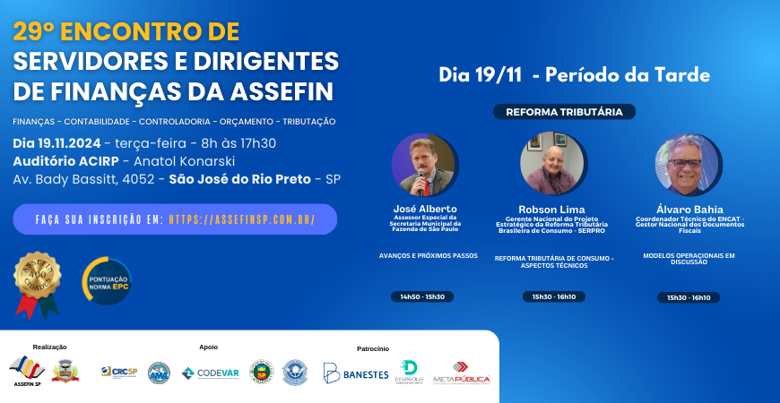 29.º Encontro de Servidores e Dirigentes Fazendários da ASSEFIN-SP (Finanças - Contabilidade - Auditoria-Fiscal)