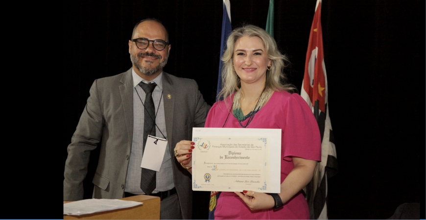 Afonso Reis Duarte, atual Secretário da Fazenda em Ribeirão Preto entregou o diploma de reconhecimento ao Walter Assis da Cunha, delegado regional do CRCSP, em Ribeirão Preto (foto).