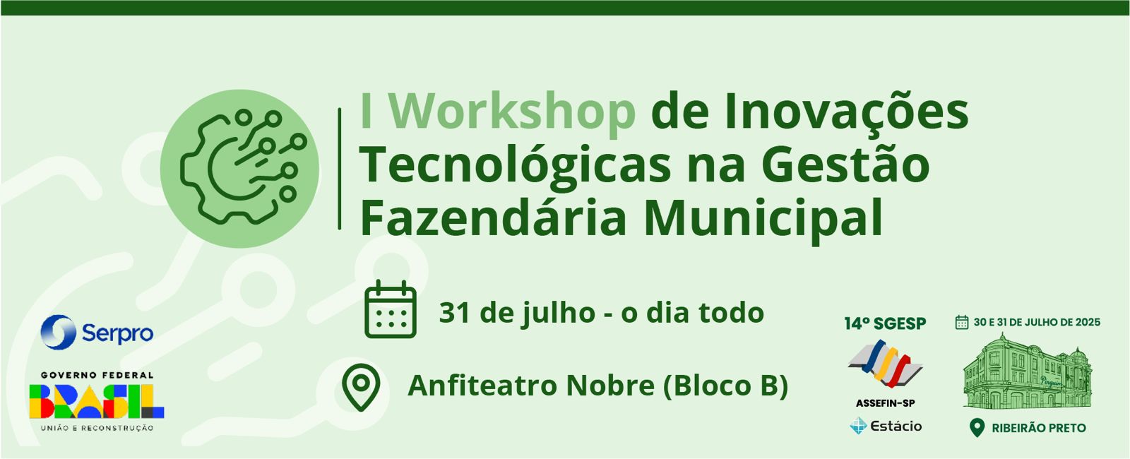 A 14.ª edição do Seminário de Gestão Pública Fazendária (SGESP), promovido pela ASSEFIN-SP, acontecerá nos dias 30 e 31 de julho de 2025, com uma programação intensa voltada à qualificação dos gestores públicos. O evento será realizado no Teatro Principal e nos anfiteatros de Ribeirão Preto, reunindo especialistas e autoridades em finanças públicas para debater temas centrais como inovação, reforma tributária, contabilidade, auditoria e orçamento municipal.