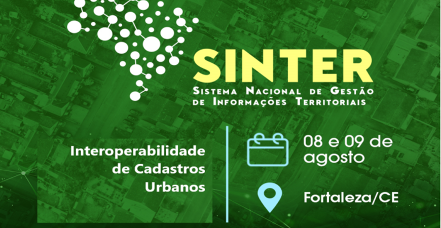 A Receita Federal fará um grande evento presencial com o tema interoperabilidade de cadastros urbanos e Sinter, nos dias 08 e 09 de agosto de 2023, das 09:00h às 18:00h, no auditório do Mareiro Hotel, na cidade de Fortaleza/CE.