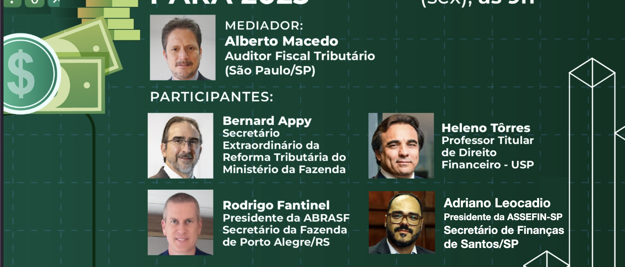 Serão palestrantes e abordarão como as mudanças podem melhorar a produtividade e competitividade do país, com foco em simplificação tributária e isonomia entre os setores econômicos: