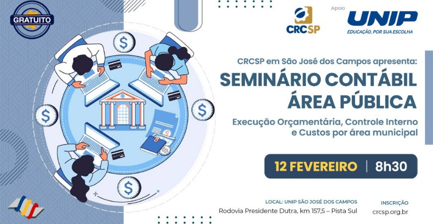 No dia 12 de fevereiro de 2025, das 8h30 às 12h30, será realizado o Seminário Contábil Área Pública (Execução Orçamentária, Controle Interno e Custos por Área Municipal), um evento presencial na UNIP – São José dos Campos. Organizado pelo Conselho Regional de Contabilidade do Estado de São Paulo (CRCSP), o seminário tem como objetivo promover debates e capacitação sobre temas fundamentais da contabilidade aplicada à administração pública.