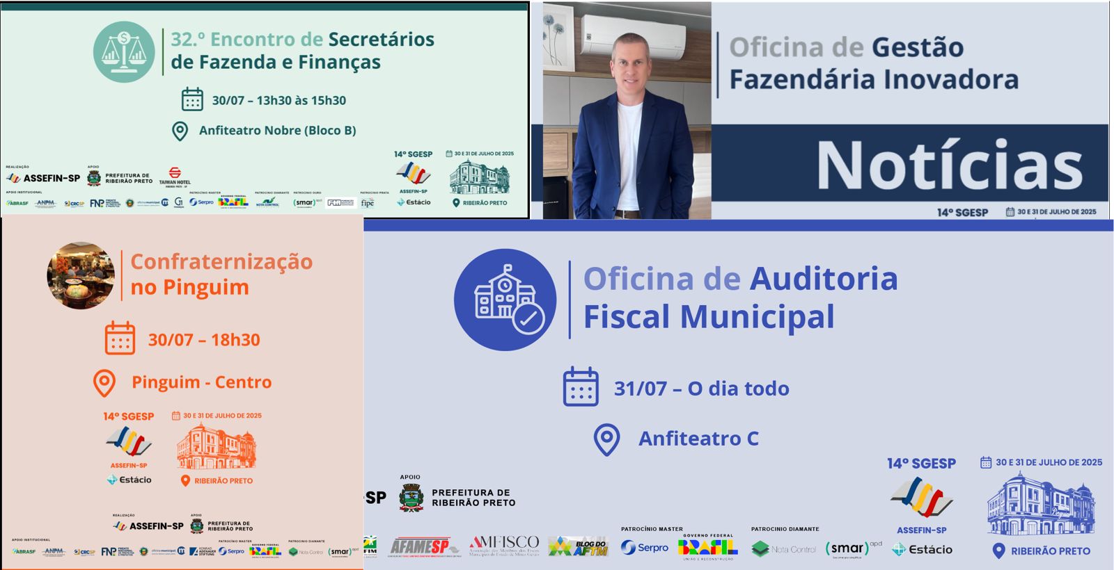 O 14.º Seminário de Gestão Pública Fazendária – SGESP, que será realizado nos dias 30 e 31 de julho de 2025, na Universidade Estácio de Ribeirão Preto, já se consolida como um dos eventos mais estratégicos do calendário da administração pública municipal. Com foco nos desafios e inovações da gestão fazendária, a programação contará com painéis interativos, oficinas técnicas e encontros de alto nível que prometem qualificar ainda mais os debates sobre tributação, contabilidade pública e reforma fiscal. Confira os destaques confirmados: