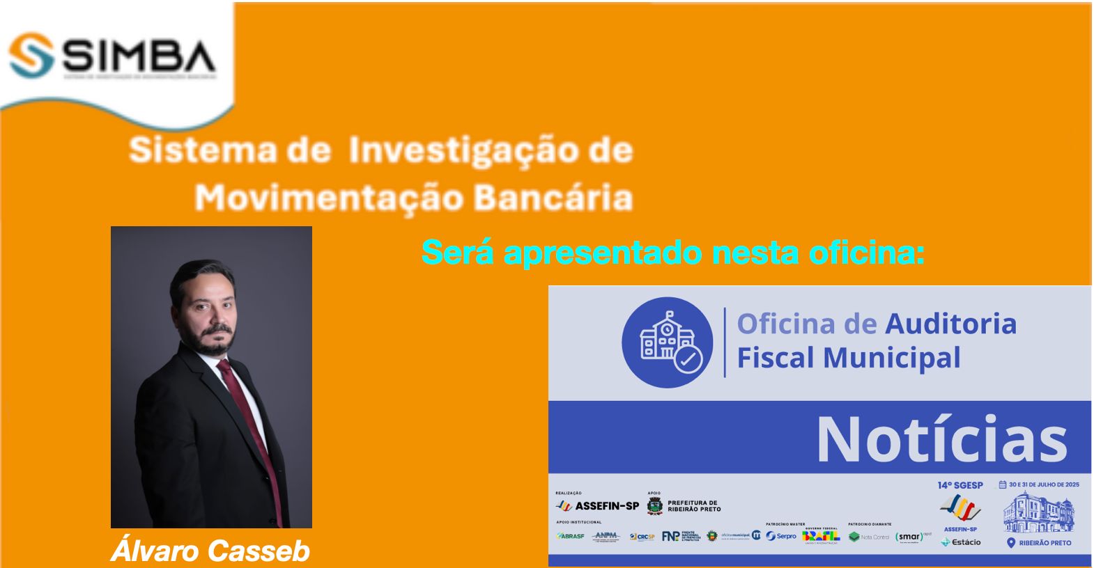 O tema será abordado em palestra específica durante a Oficina Fiscal-Tributária, no dia 31 de julho, sob o título “Diálogos entre SIMBA e o Fisco”, com o especialista Álvaro Melo Casseb, servidor da Procuradoria-Geral da República com 17 anos de atuação na gestão do SIMBA. Casseb possui formação em Direito, especialização em Direito Civil e ampla experiência como instrutor em treinamentos sobre sigilo bancário realizados em mais de 100 órgãos públicos.