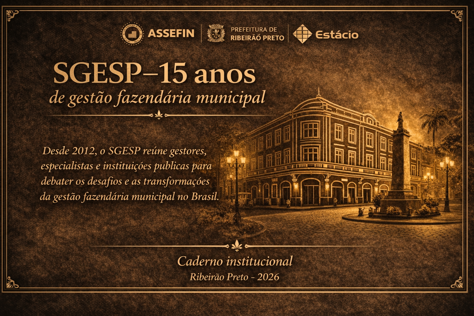 O Seminário de Gestão Pública Fazendária (SGESP), realizado pela primeira vez em 14 de março de 2012, completou, em 2026, 14 anos de trajetória contínua e já se prepara para a sua 15.ª edição, que será realizada nos dias 29 e 30 de julho de 2026, na Universidade Estácio, em Ribeirão Preto (SP), em parceria com a própria instituição.