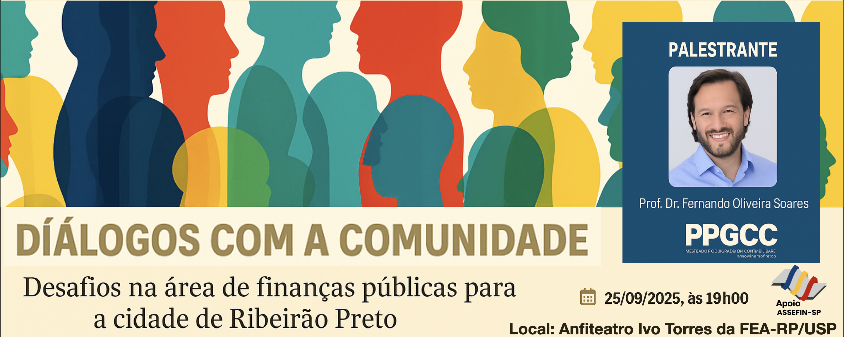 O Programa de Pós-Graduação em Controladoria e Contabilidade (PPGCC) da FEA-RP/USP realiza no próximo dia 25 de setembro, às 19h, mais uma edição do Diálogos com a Comunidade, iniciativa que aproxima a pesquisa acadêmica da sociedade por meio de palestras acessíveis e de interesse público.